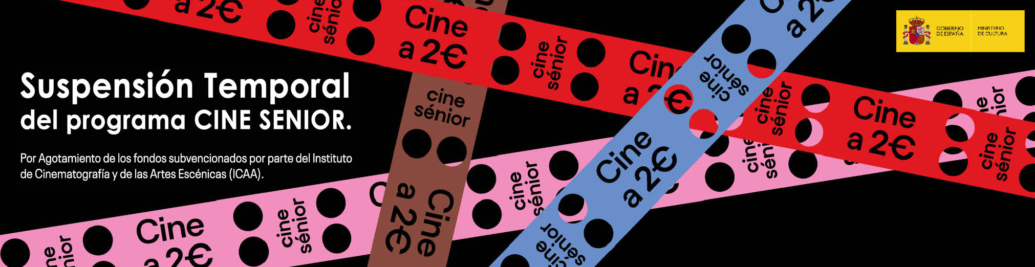 - Precio CINE SÉNIOR: Suspensión Temporal del programa Cine Sénior, por agotamiento de los fondos subvencionados por parte del Instituto de Cinematografía y de las Artes Escénicas (ICAA).